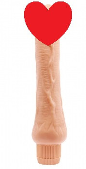 Реалістичний вібратор без мошок, має чітко окреслену гладку головку, пружне дуло, характерні складки та рельєф на поверхні як венозна сітка.